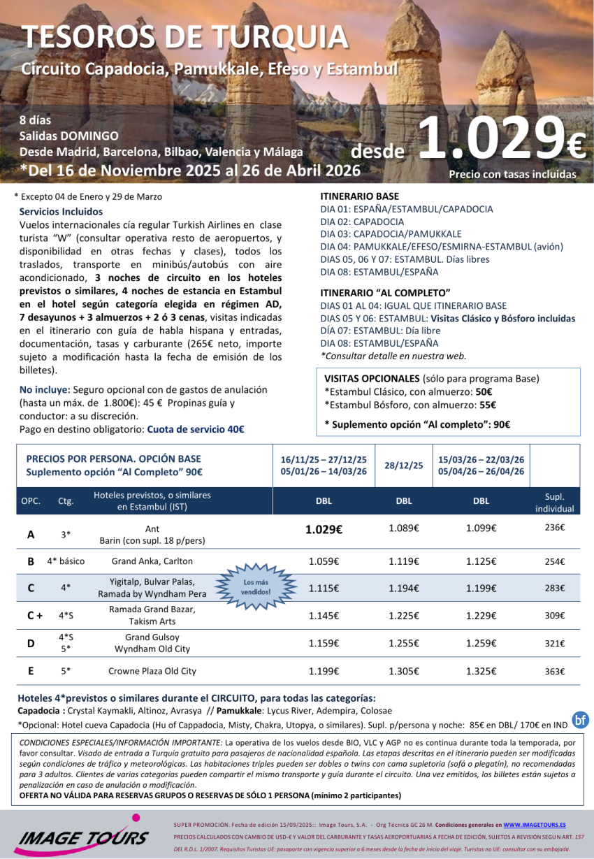 Tesoros d TURQUIA Otoño-Invierno desde Capadocia, con Pamukkale, Efeso y Estambul, todo avión, 8ds desde 1029€